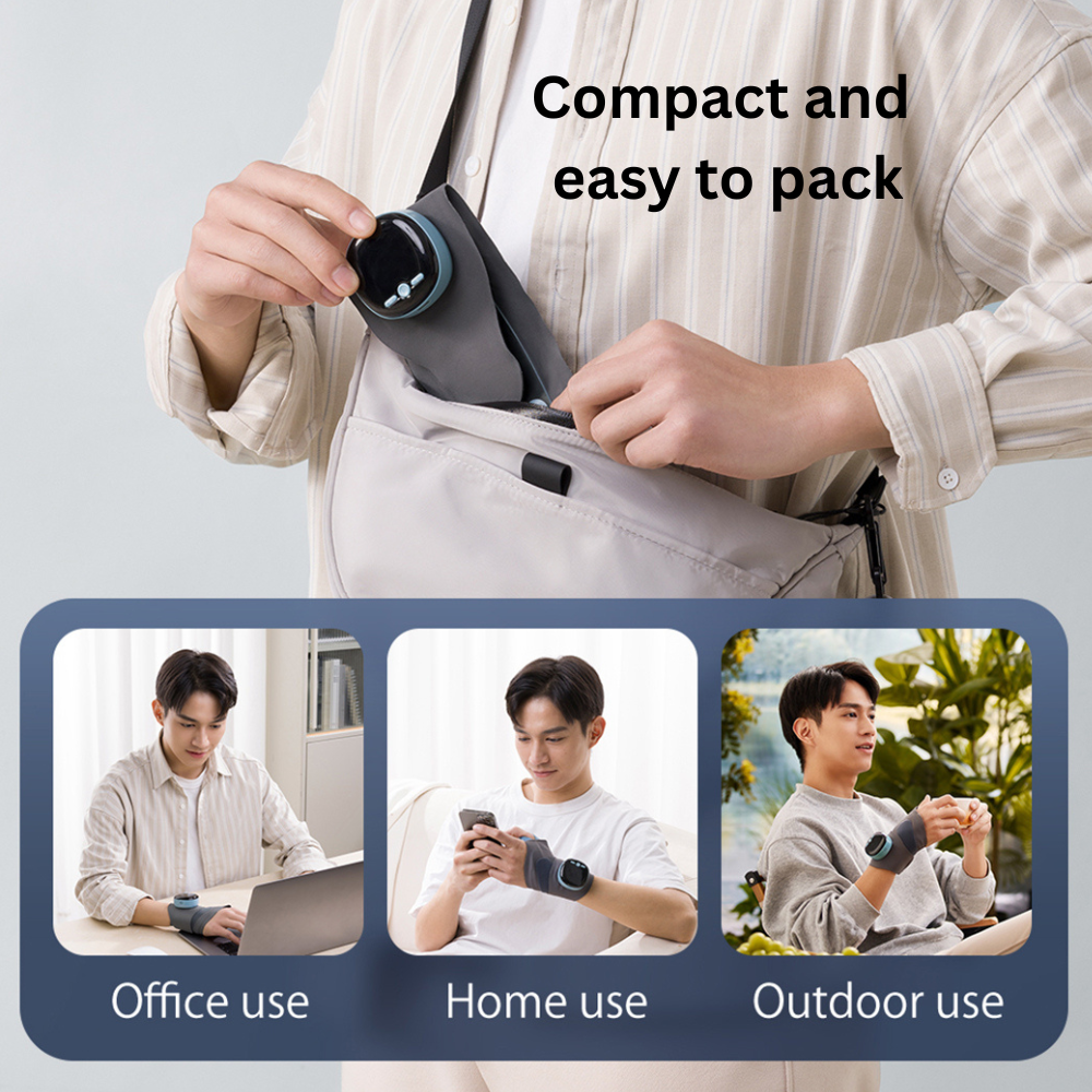 Designed for versatility and ease of use, the rechargeable hand massager provides adjustable length and elastic wrist wrapping for optimal support. It's lightweight design makes it convenient to carry and use while you are working, while the rechargeable 800mAh battery ensures uninterrupted performance.