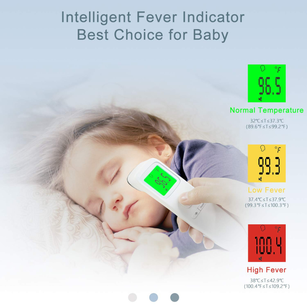The thermometer stores the last 35 temperature readings, allowing you to track changes in temperature over time. The device also features a fever alarm that alerts you when your temperature is above normal readings